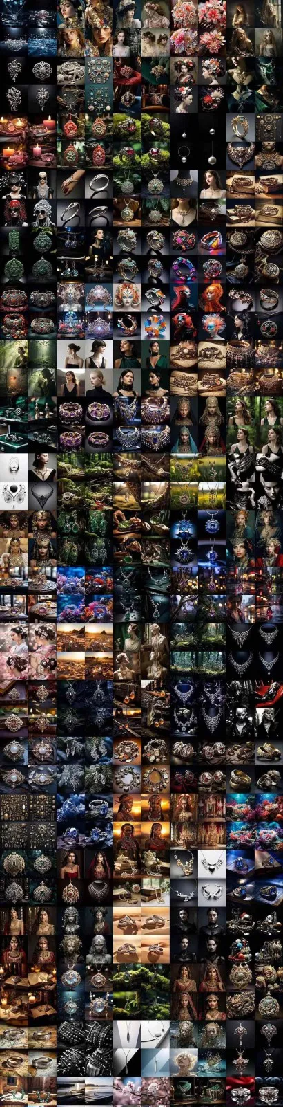 463个Midjourney珠宝摄影提示词-涵盖戒指,项链,耳环,手链,宝石和奢侈配饰